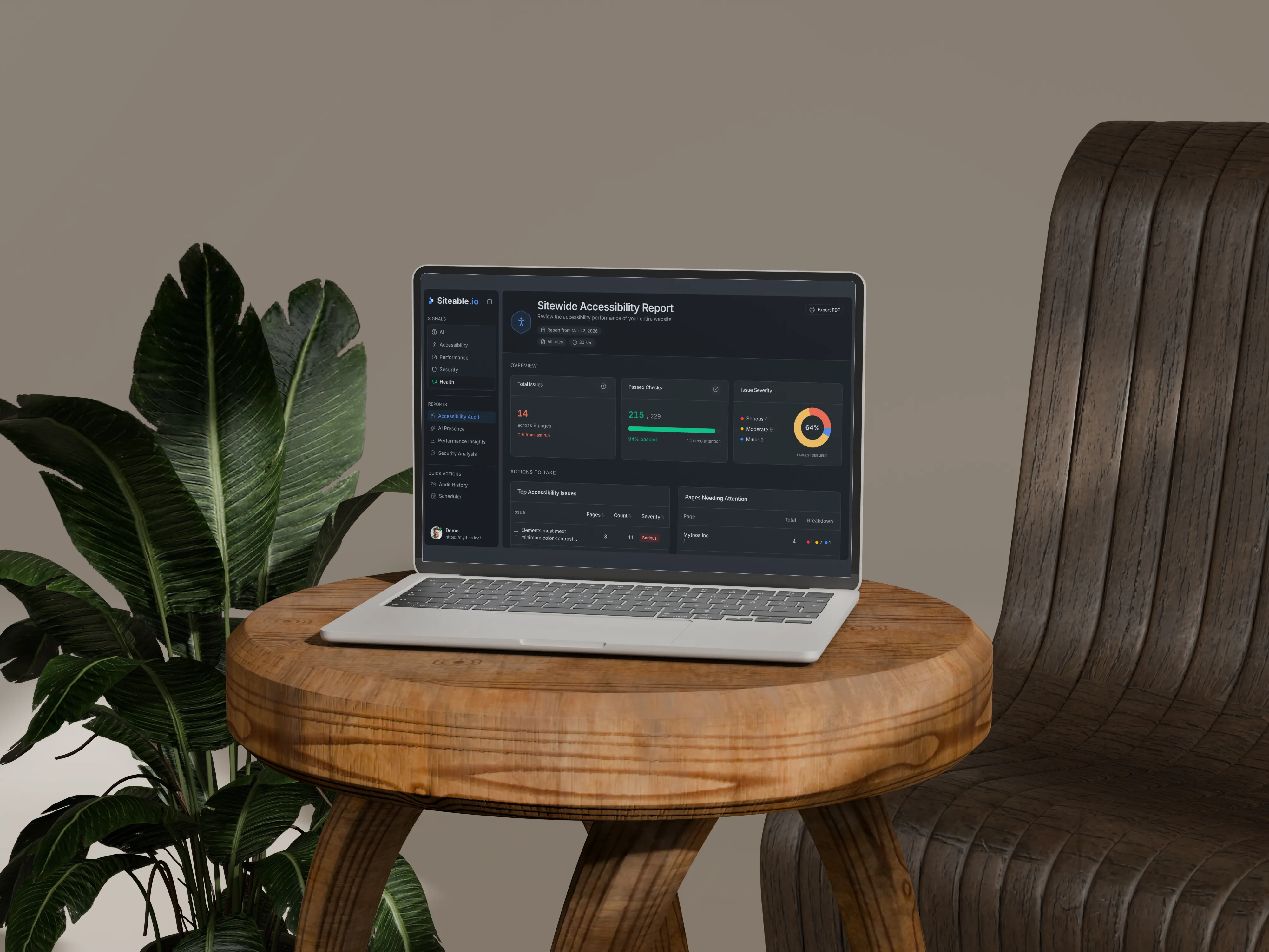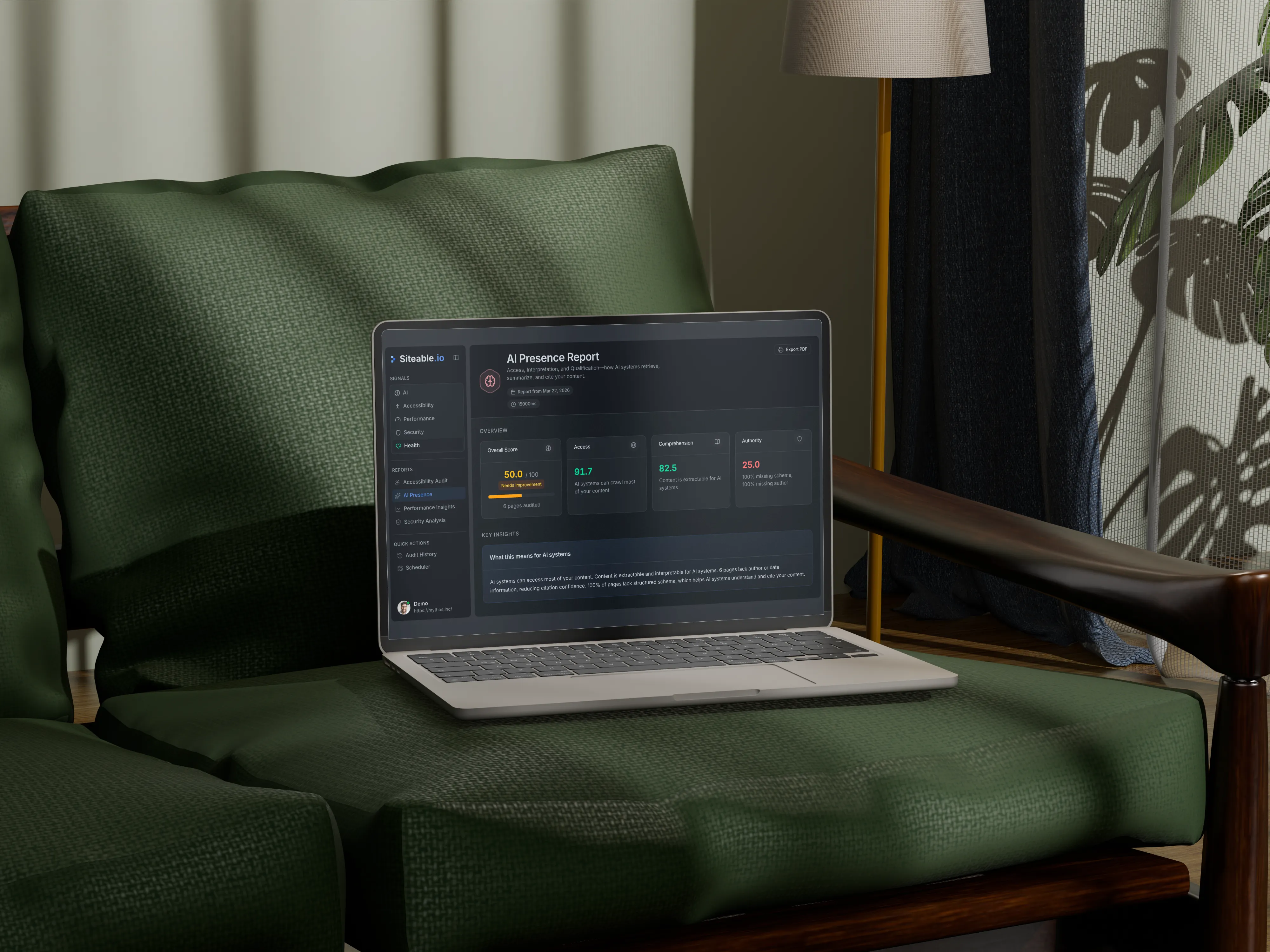 Siteable is an all-in-one website audit system for accessibility, performance, security, and AI visibility.